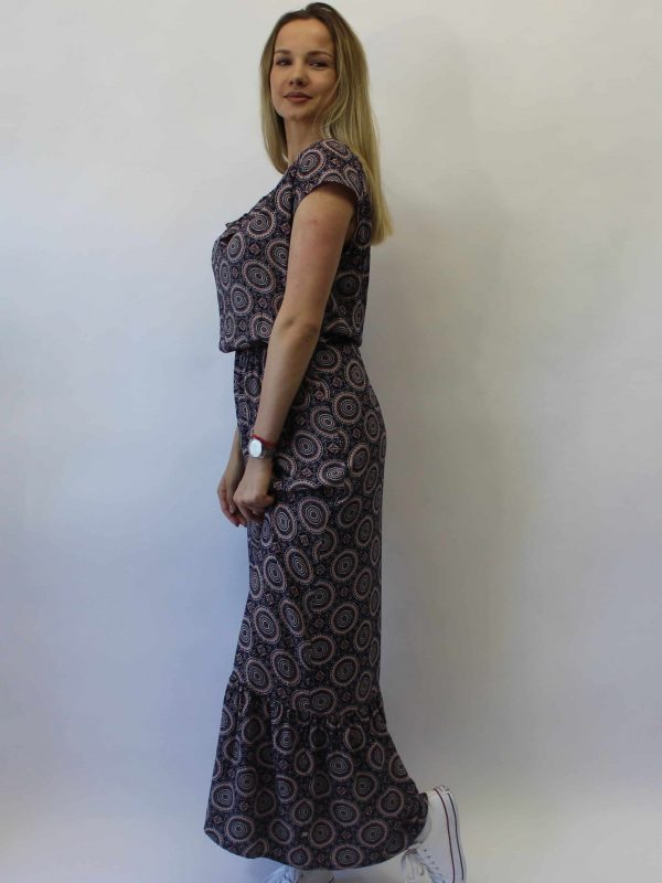 Maxi letnja haljina sa karnerom. Nosiva je svuda, pri izlasku u grad,odlasku na plažu, pri večernjim romantičnim sastancima. Može vam savršeno poslužiti i za odlazak na posao.